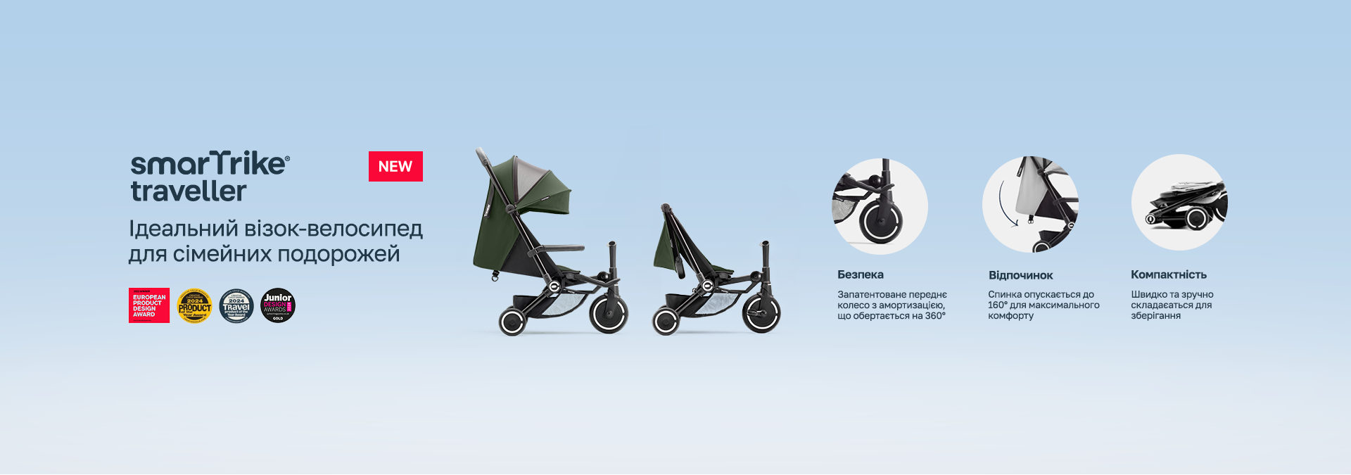 - велосипеди, біговели та інший дитячий транспорт — ідеальні для перших прогулянок і активного дозвілля;