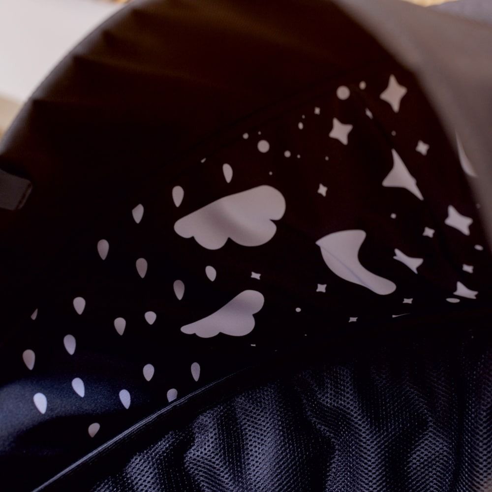 Різноманітні висококонтрастні ілюстрації, розміщені всередині капюшона, допомагають зміцнити зір вашої дитини та зміцнити зв’язки між мозком і очима. Ми вибрали небесні об’єкти, такі як сонце, місяць, хмари та зірки, як закодоване повідомлення, яке означає, що межею є лише небо.