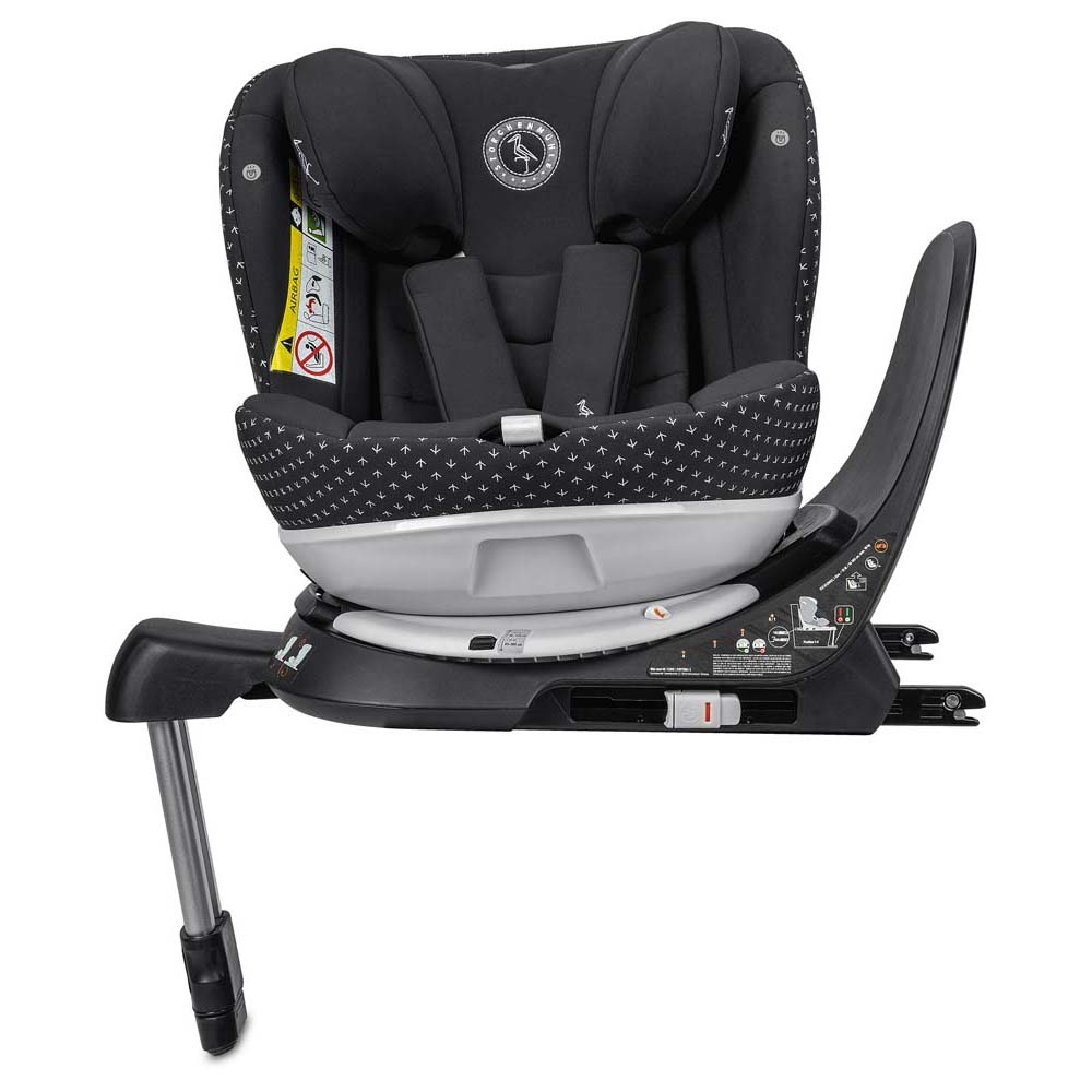 • Крісло встановлюється за допомогою конекторів Isofix та стабільної опорної ноги. Індикатори Isofix допомагають перевірити правильність монтажу — зелений колір означає, що все встановлено коректно. Використання дозволене лише в автомобілях із кріпленнями Isofix та i-Size-сумісними сидіннями. Для максимальної безпеки рекомендується встановлення на задньому сидінні проти напрямку руху. При встановленні на передньому сидінні подушка безпеки має бути деактивована.