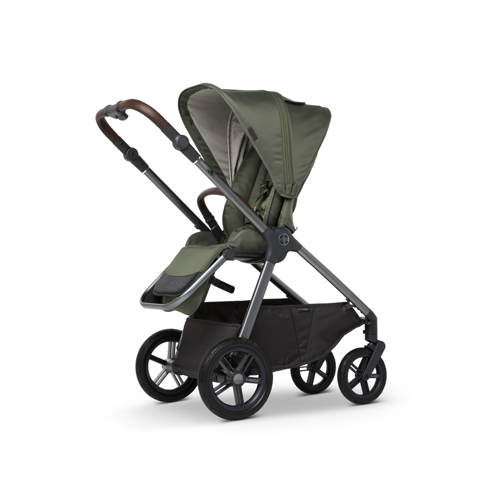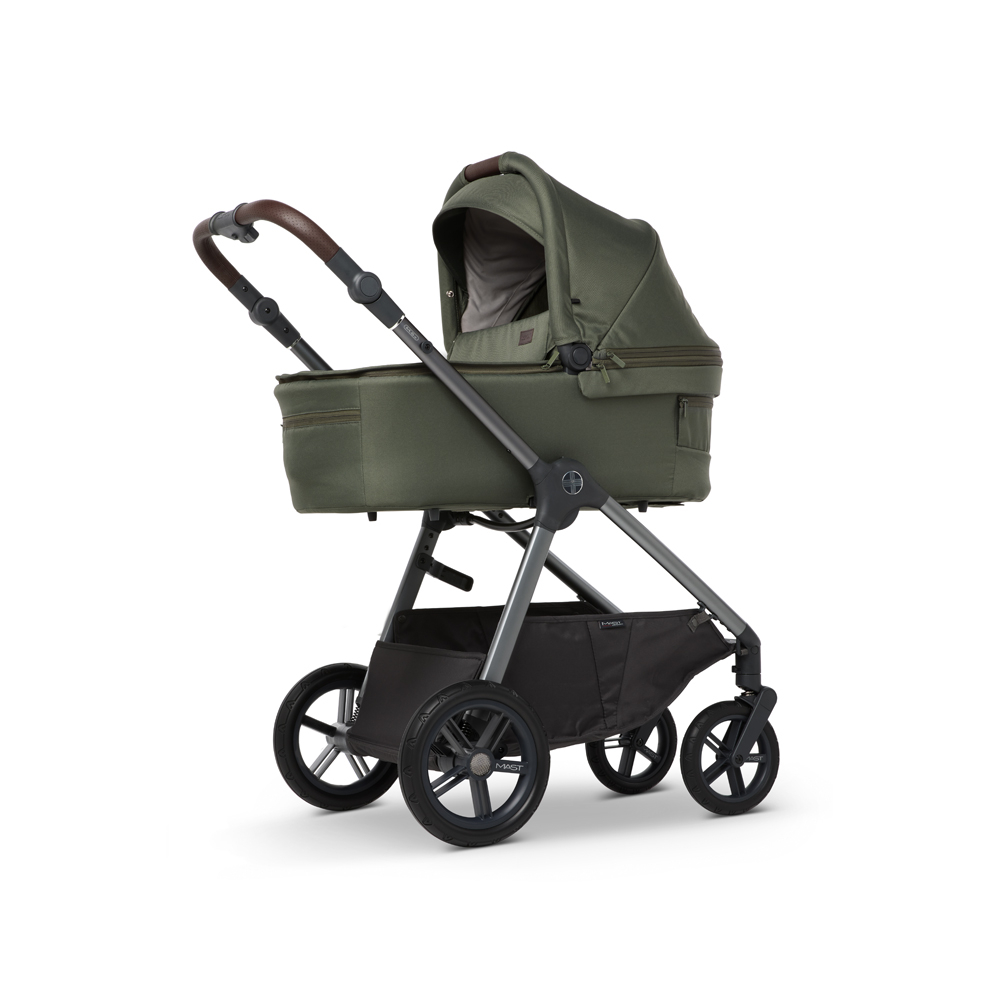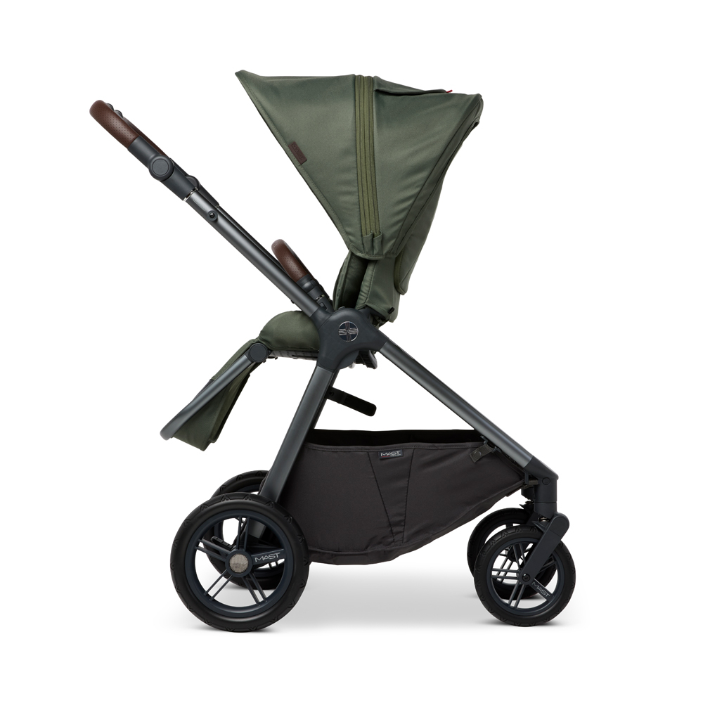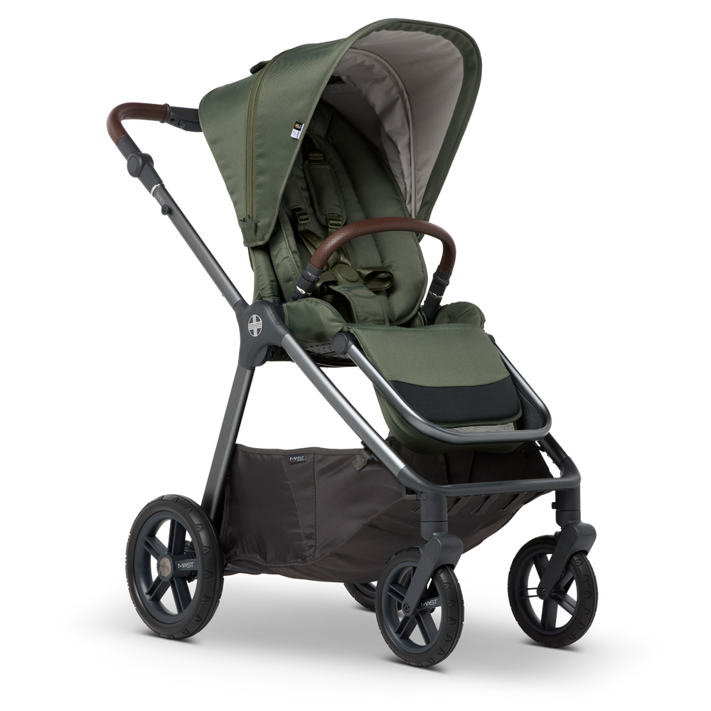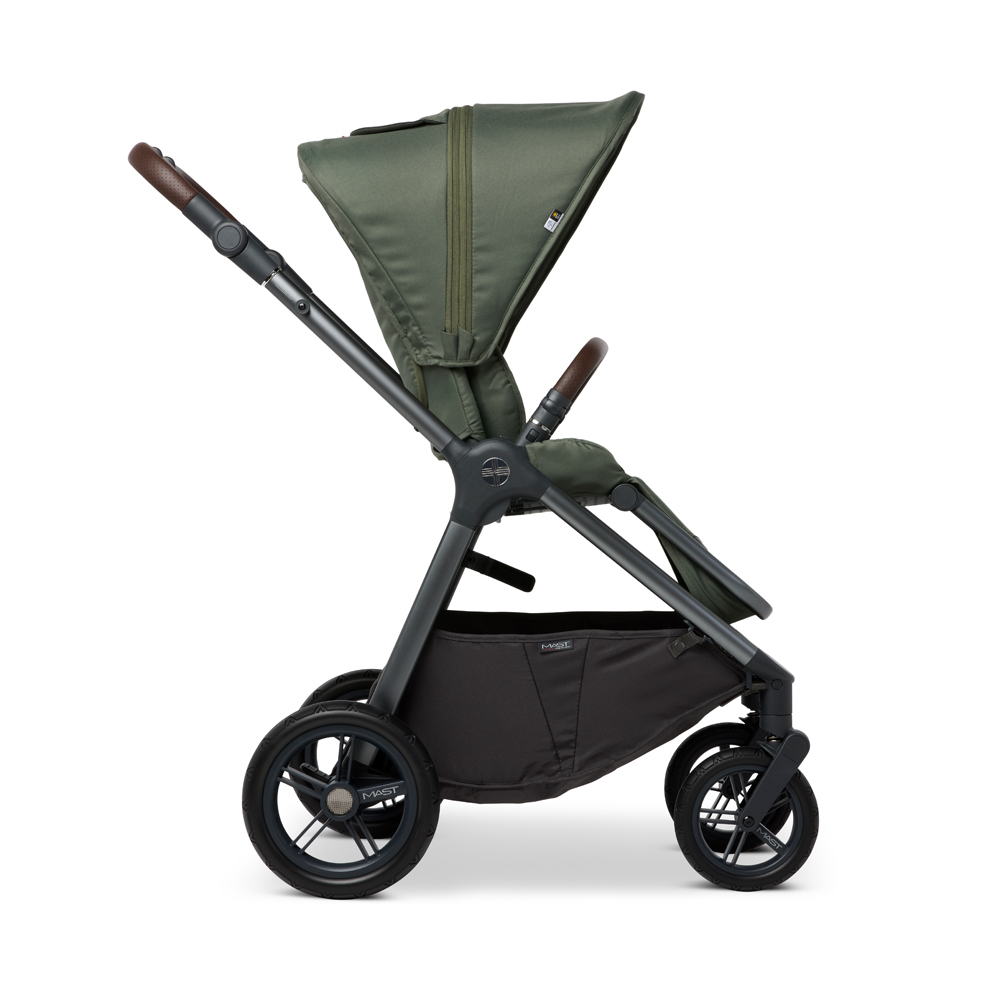 Легка рама виготовлена з алюмінію, а підвіска на всіх колесах коляски M.5x забезпечує ідеальний хід.