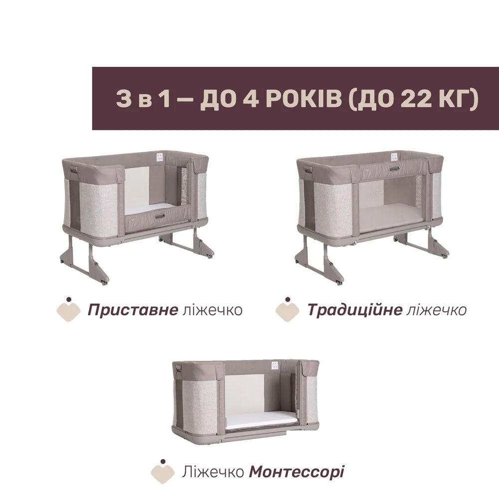 Великий розмір спального місця та боковина, яку легко відкривати та закривати однією рукою, зручне рішення для спільного сну з дитиною від народження до 4 років.