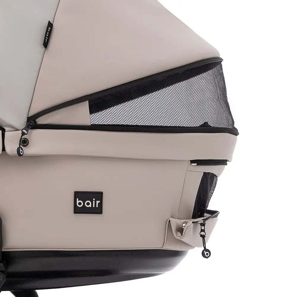 Люльку Bair Kiwi доповнює накидка з блискавками у верхній частині, що суттєво полегшує доступ до дитини за лічені секунди. А відворот з оглядовим віконцем дозволить захистити малюка від опадів або вітру.