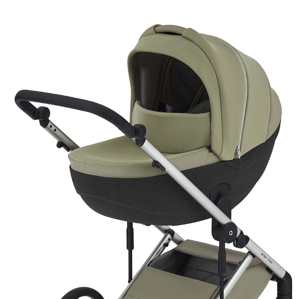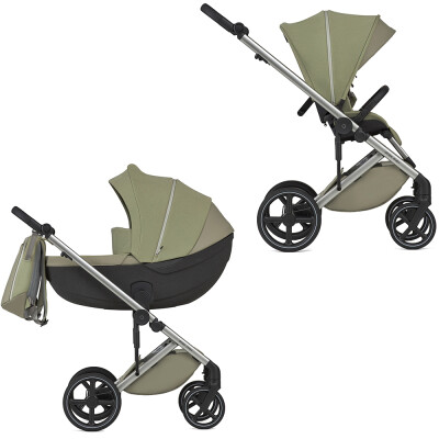 Люлька виготовлена з EPP матеріалу (інноваційного спіненого поліпропілену), що на 100% придатний для вторинного перероблення. Внутрішнє покриття з екологічно чистої бамбукової тканини. Матрац виготовлений з натурального матеріалу Sorona, відомого своїми антибактеріальними та дихаючими властивостями. Поліуретанові колеса виготовлені за передовою технологією, що робить їх легшими, м’якшими, підвищуючи маневровість і стійкість до зношування, щоб прогулянка завжди була плавною.