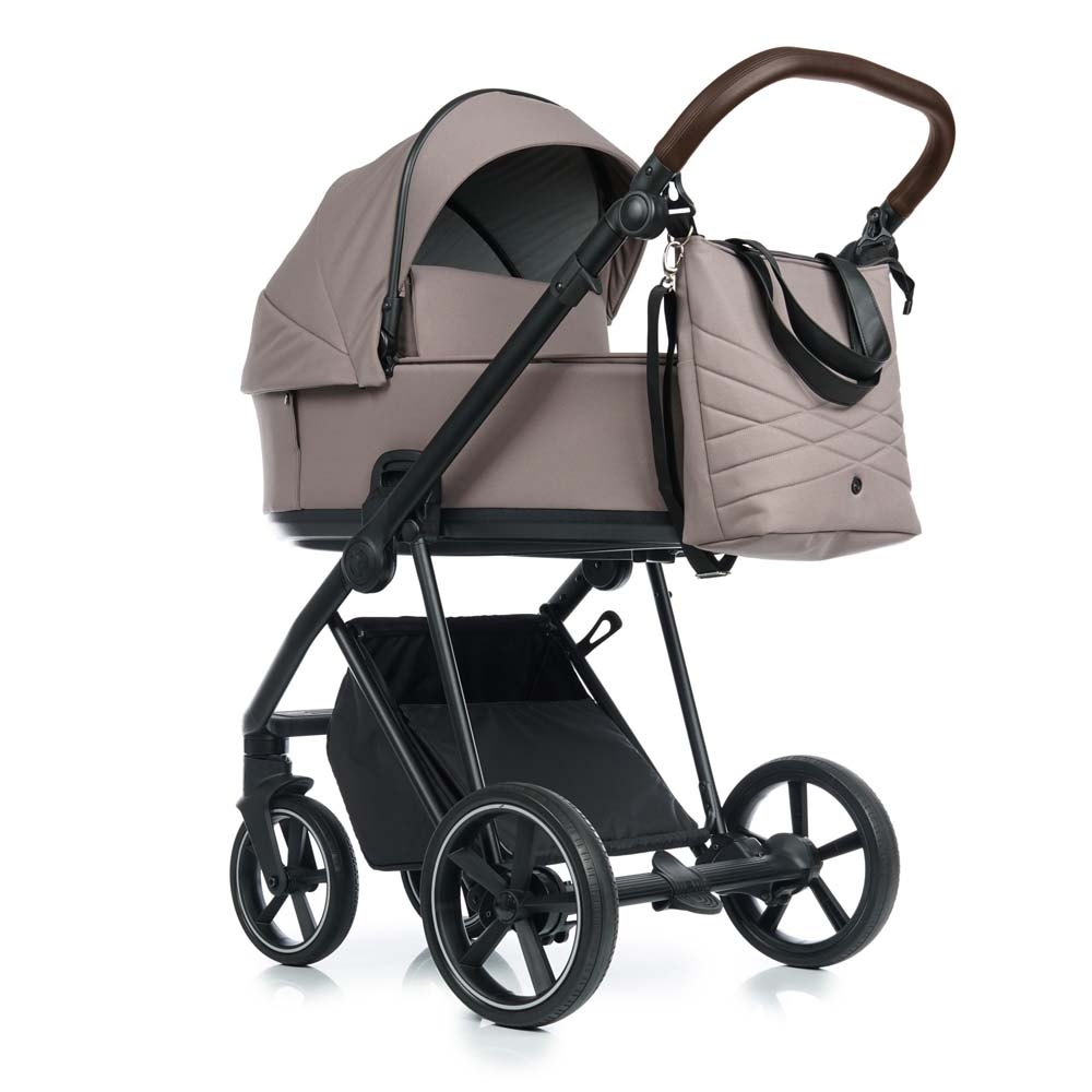 Велика практична та сучасна сумка, що кріпиться до ручки коляски. Можна носити як на плечі, так і через плече за допомогою ремінця.
