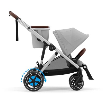Візок легко адаптується під одну або дві дитини, завдяки чому Cybex e-Gazelle зростає разом із вашою сім'єю. Дозволяє одночасне використання двох люльок, сидінь, автокрісел або будь-якої їх комбінації. - Комфортна амортизація