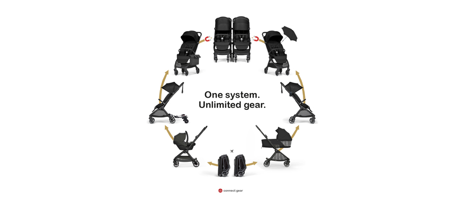 • Єдина у світі коляска з магнітною системою з’єднання, яка автоматично приєднує аксесуари — або навіть іншу коляску — за одну секунду.