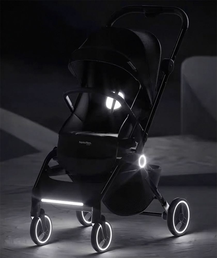 Коляски Hamilton by yoop відповідають стандартам безпеки EN 1888. Тому безпека вашої дитини гарантується 5-точковою магнітною системою ременів та єдиною гальмівною системою з великою педаллю. Батьки можуть легко відкривати та закривати магнітну застібку. При цьому пряжка повністю захищена від дітей. Світловідбивачі на шасі, колесах та ременях для кращої видимості в темний час доби.
