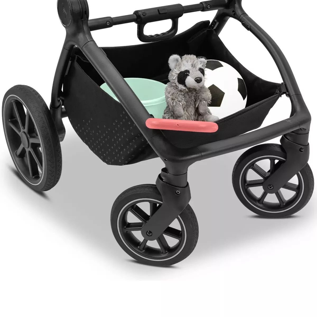 Просторий кошик вмістить усе необхідне — від сумки для пелюшок до іграшок. Світловідбивальні елементи підвищують безпеку в темну пору доби.