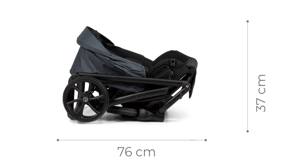 Шасі разом із прогулянковим блоком складається швидко і компактно в обидві сторони, що зручно для транспортування та зберігання.