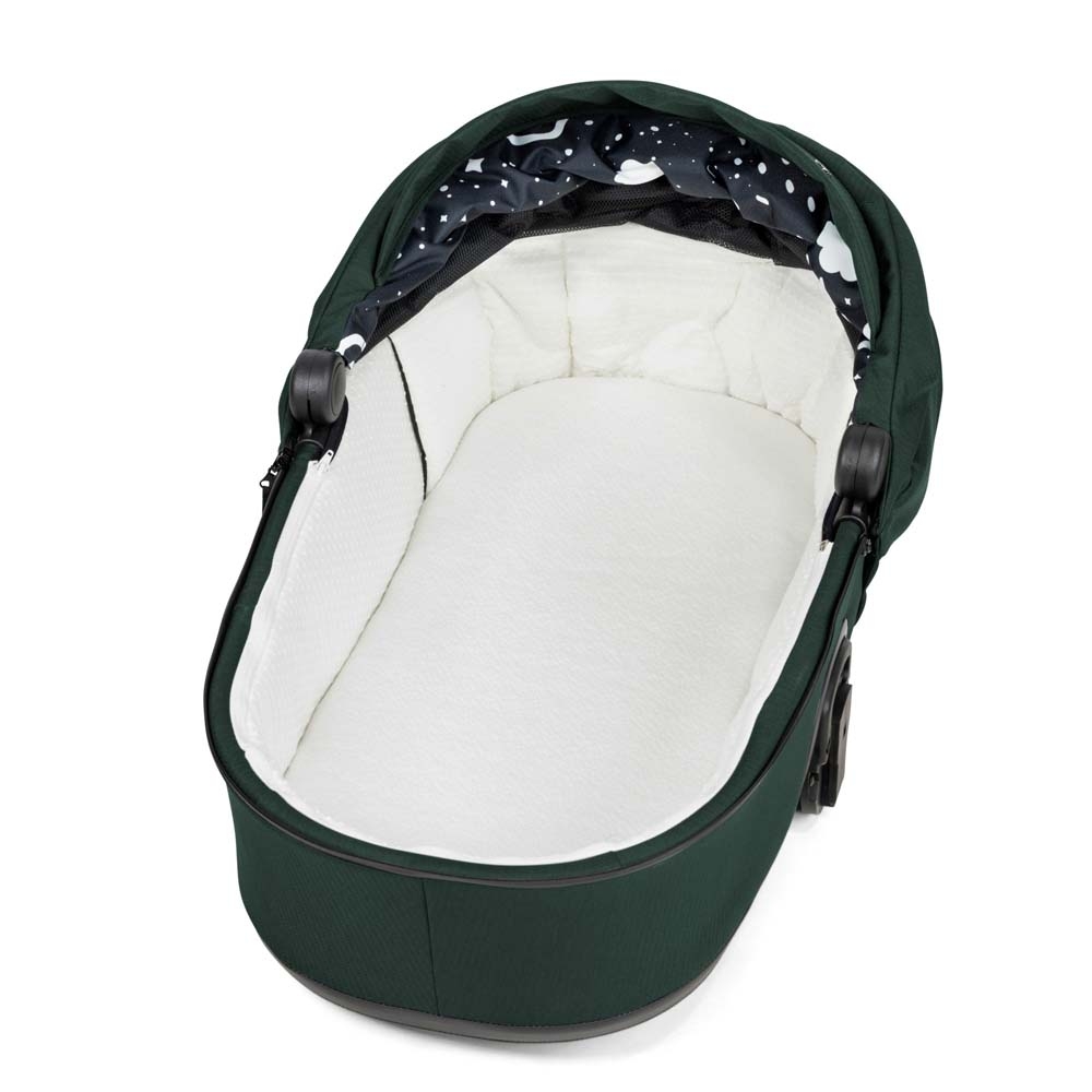 Потрійна система вентиляції з отворами в капюшоні та панорамним вікном люльки забезпечує чудову циркуляцію повітря, температурний баланс і ширший огляд, що сприяє комфорту дитини під час прогулянок.