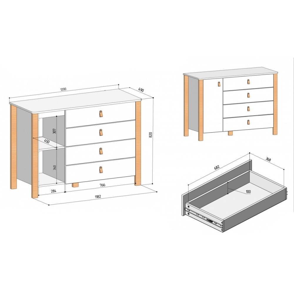 • комод виготовлений з високоякісного ламінованого сертифікованого ДСП;