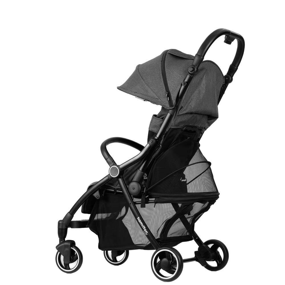 Коляска Hamilton by yoop виготовлена з якісної рами з анодованого алюмінію та тканин преміум-класу, а завдяки просторому та зручному сидінню вона безпечно перевозитиме вашу дитину від народження до 4 років, вагою приблизно 22 кг.