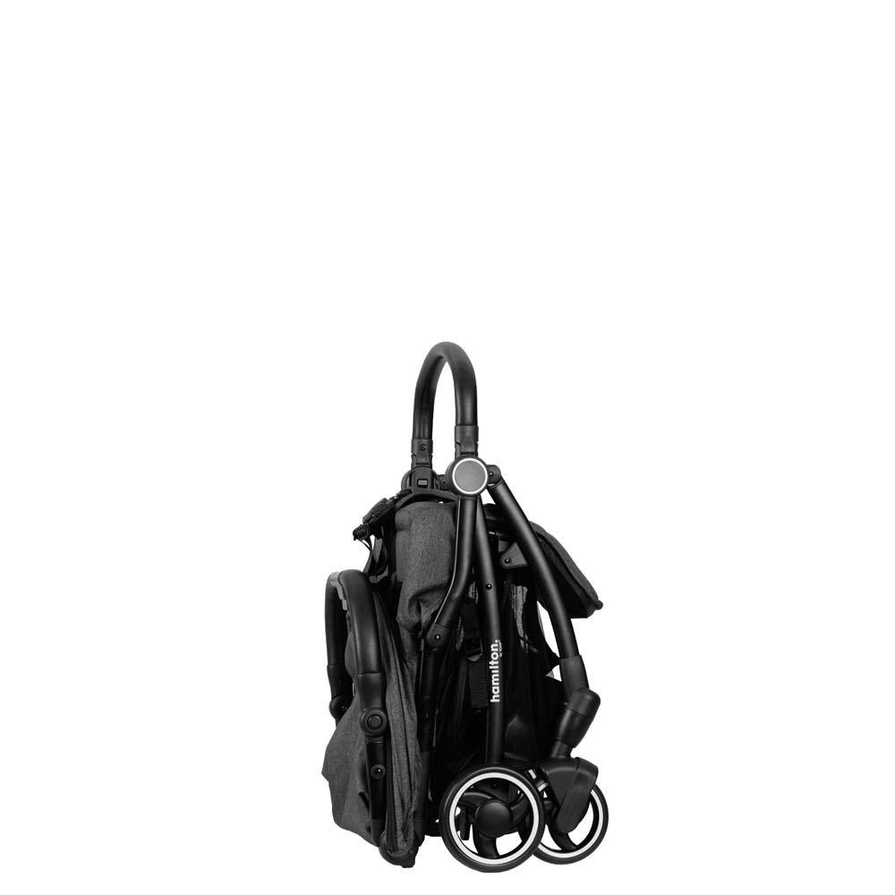 Одним натисканням кнопки Hamilton by yoop XL легко складається та розкладається, що робить транспортування та зберігання легким і простим. Більше не потрібно боротися зі складними механізмами складання або витрачати дорогоцінний час. Відчуйте зручність функції автоматичного складання і насолоджуйтеся часом з вашим малюком.