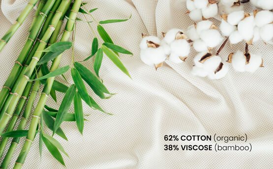 Склад — 62% органічної бавовни та 38% бамбукової віскози — утворює 100% натуральний, відновлюваний матеріал. Турбота про безпеку сьогодні — і про світ, у якому зростатиме ваша дитина.