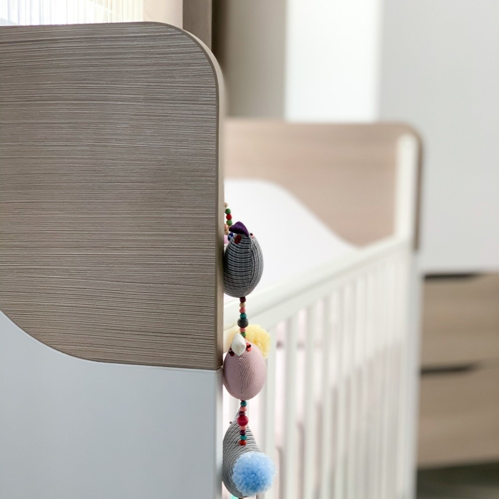 - дно ліжечка виготовлено з ортопедичних ламелей, які забезпечують достатню вентиляцію матраца і постільної білизни;