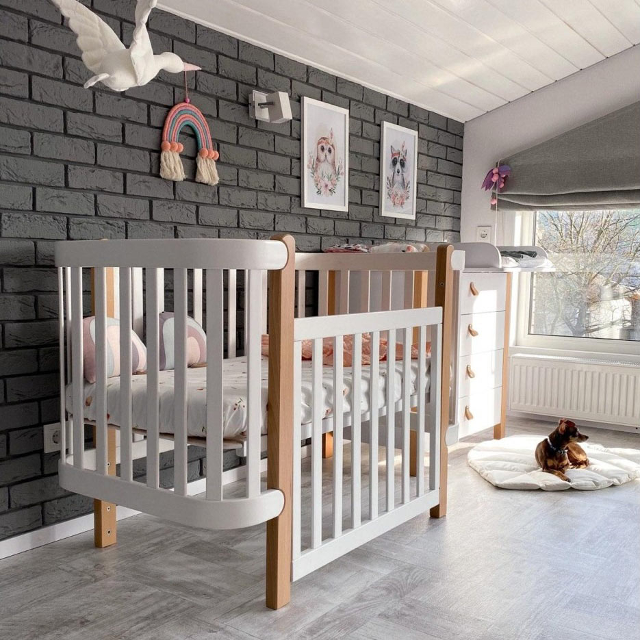 - можливість трансформації ліжечка в дитячий диванчик (для цього необхідно зняти бічну рухливу грати);