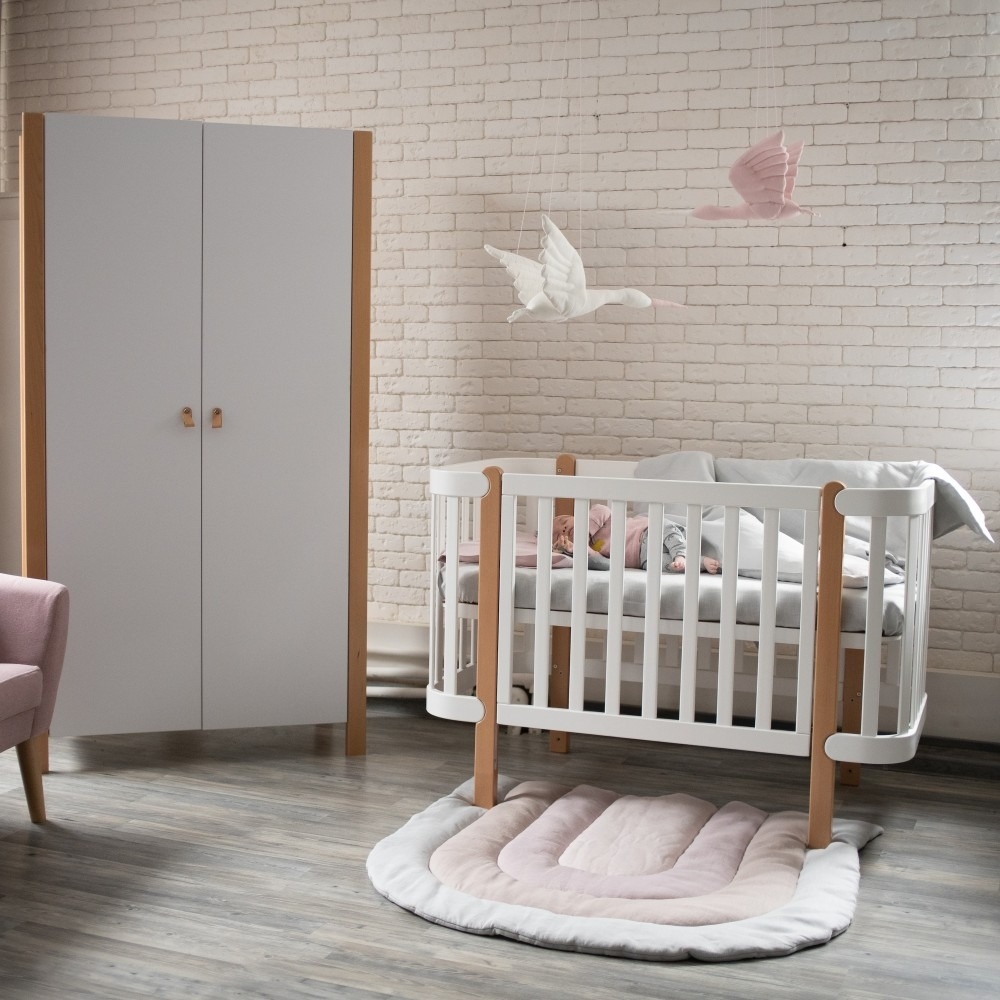 - всі деталі ліжечка мають безпечні округлі форми і поліровані поверхні;