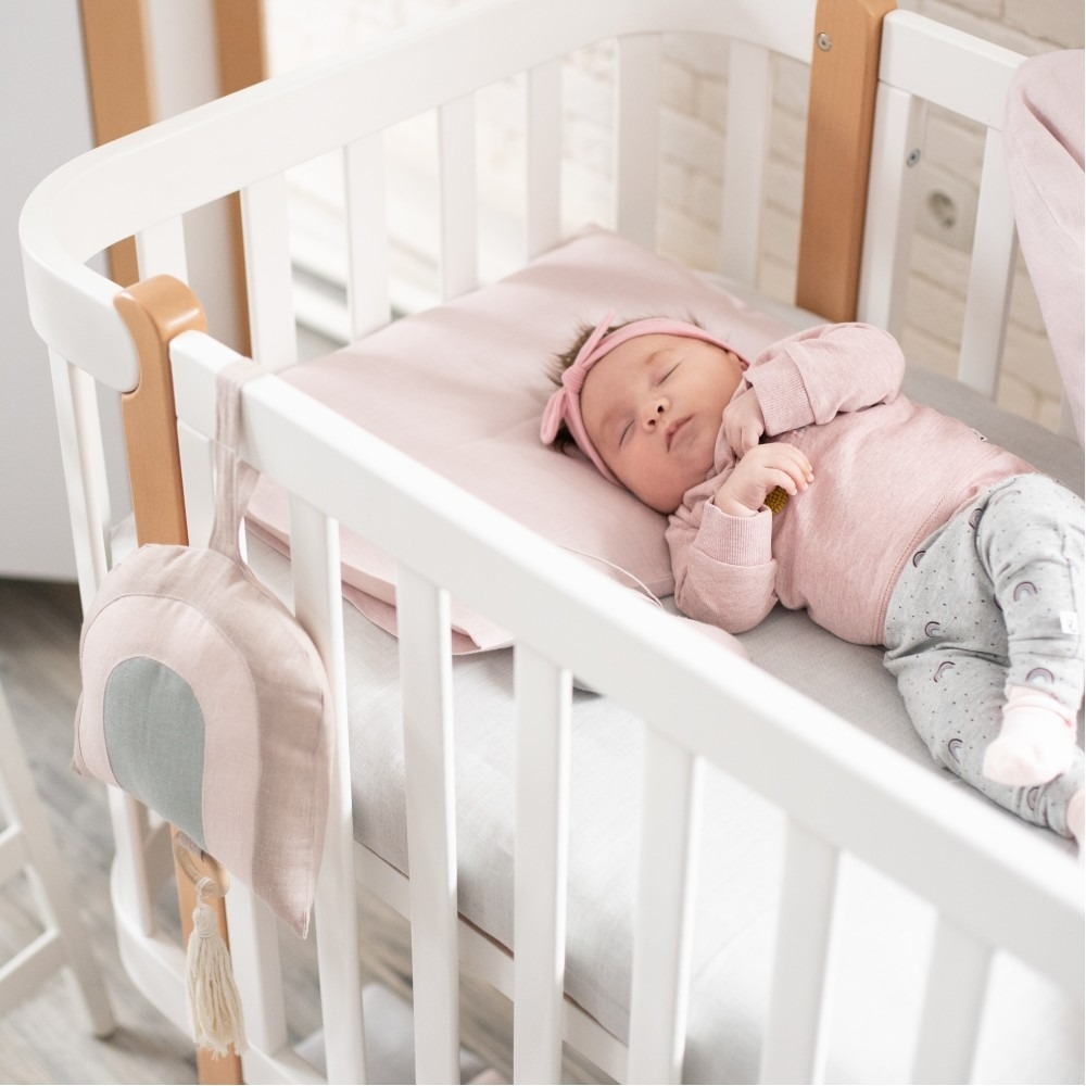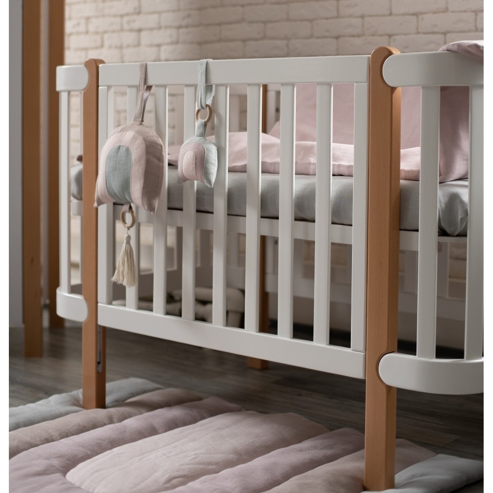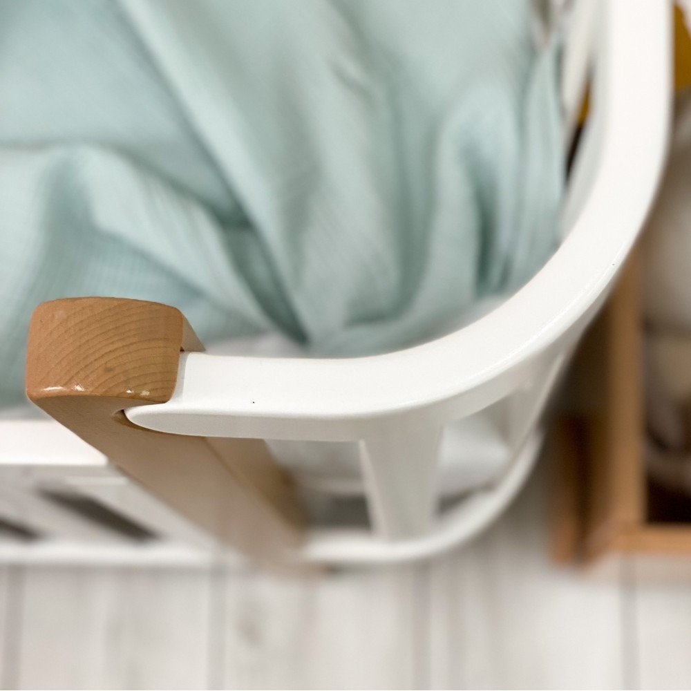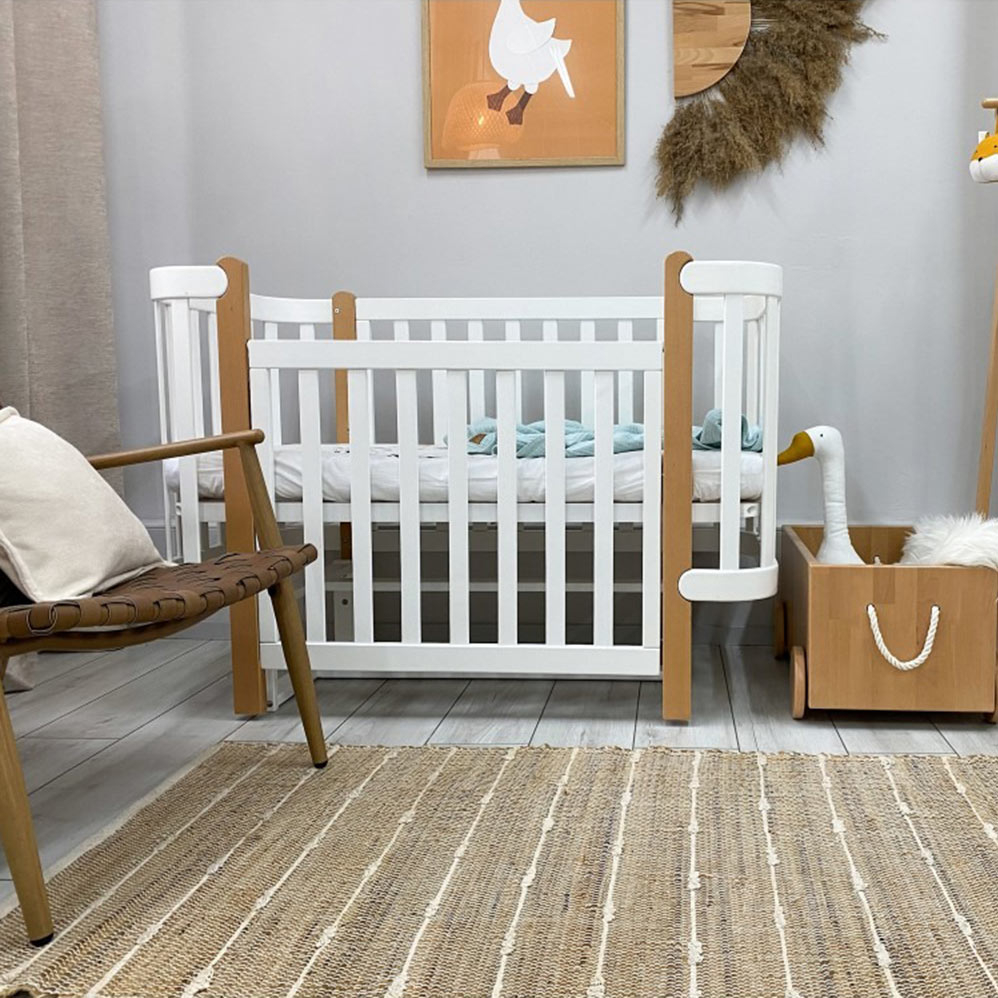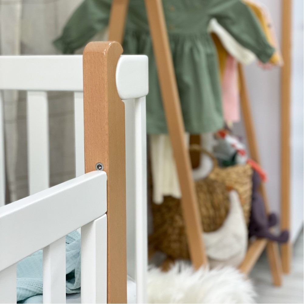 - дно ліжечка виготовлено з ортопедичних ламелей, які забезпечують достатню вентиляцію матраца і постільної білизни;