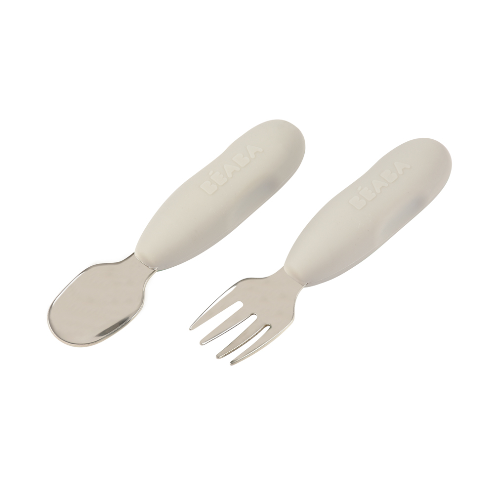 Набір ложка і виделка Beaba металеві 10+ (сірий)