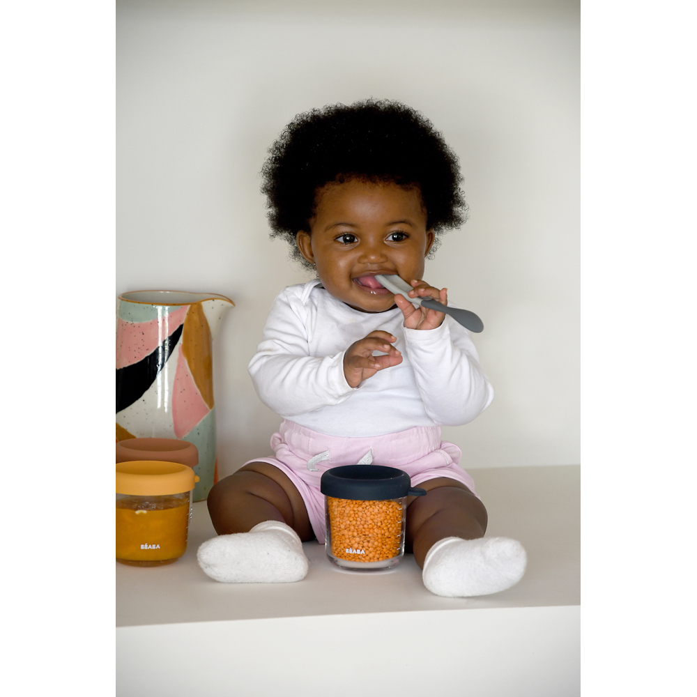 Ергономічна ложка Beaba може використовуватися не тільки для прийому їжі, але та в якості прорізувача для зубів.