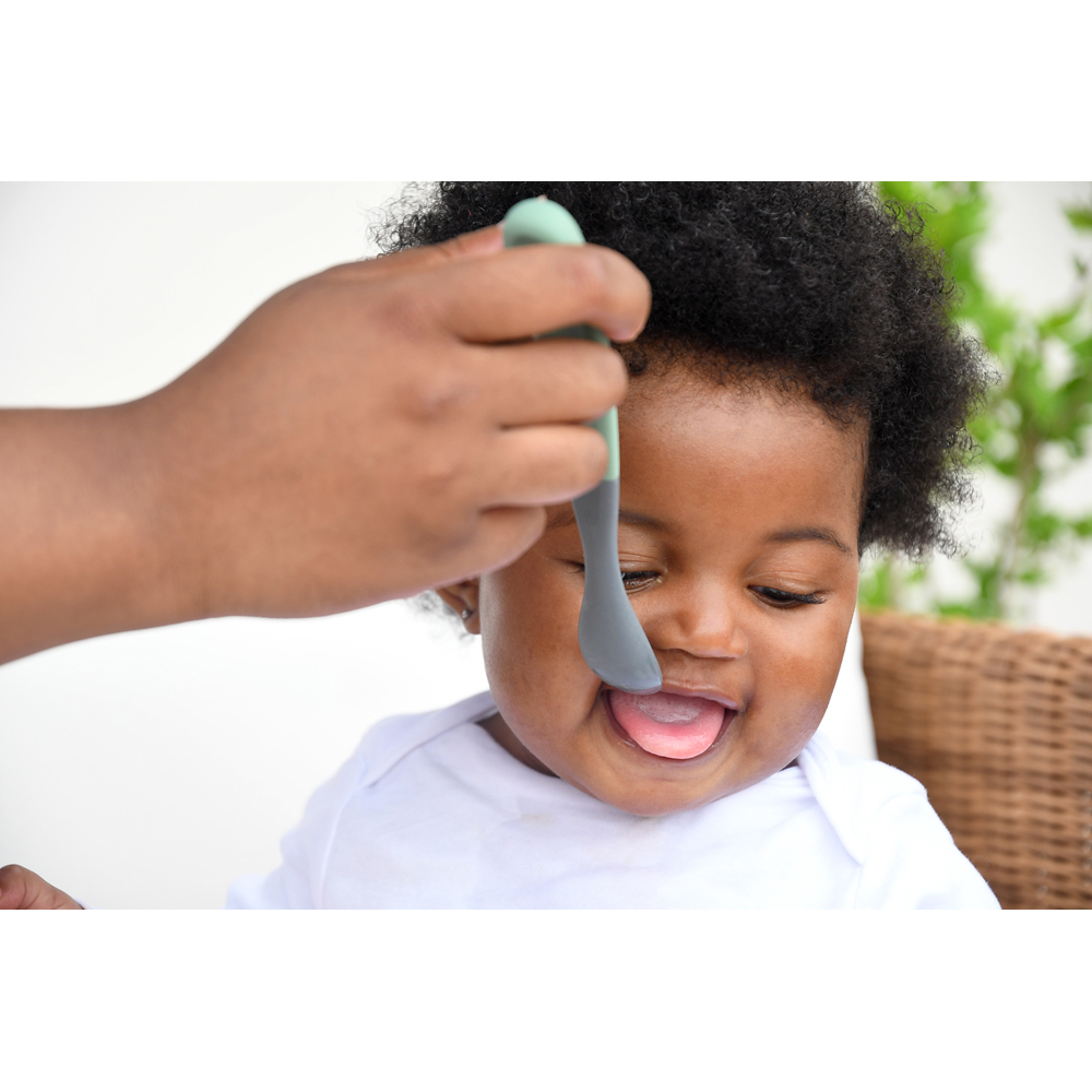 Набір ложок Beaba силіконових 4+, 2 шт (матовий зелений/сірий)