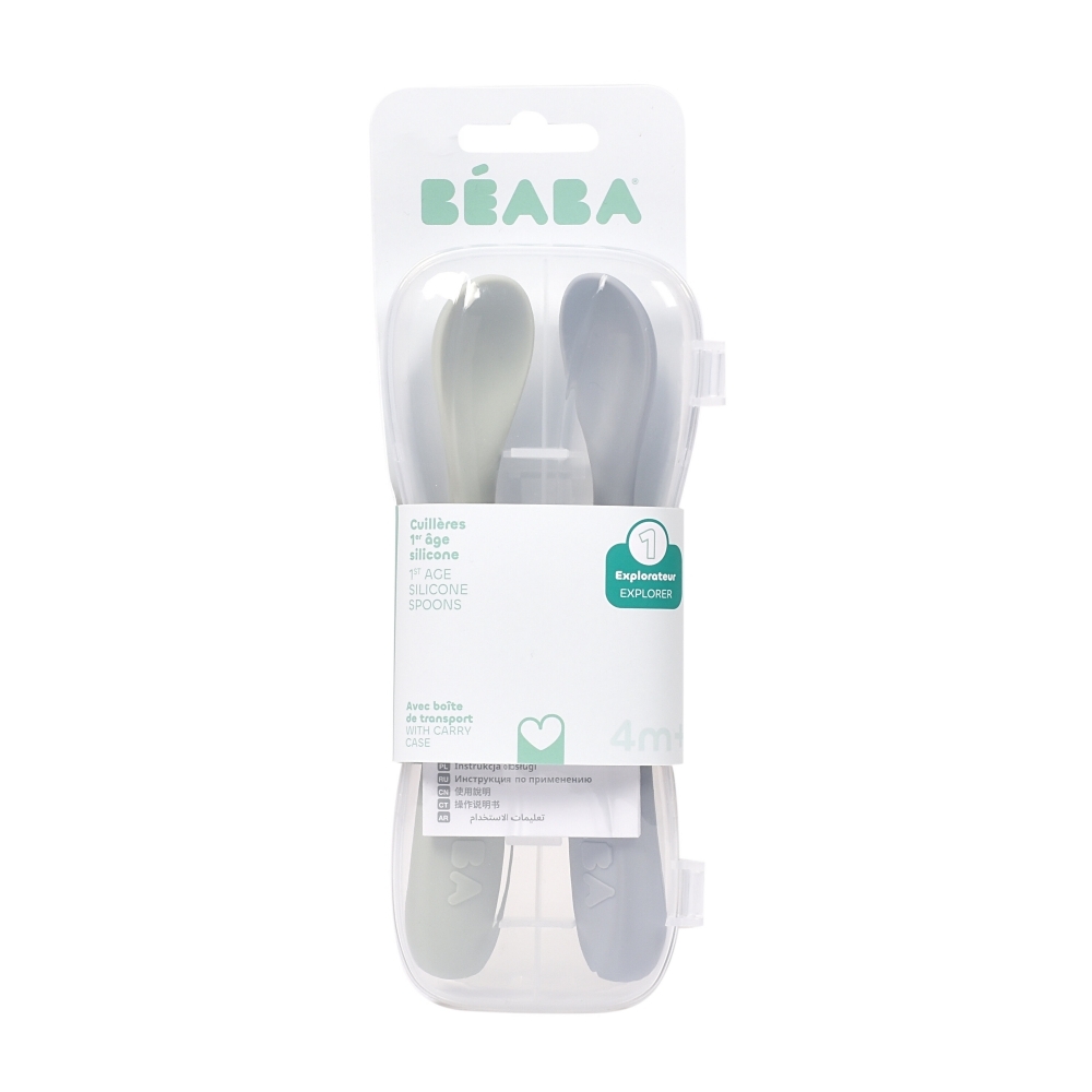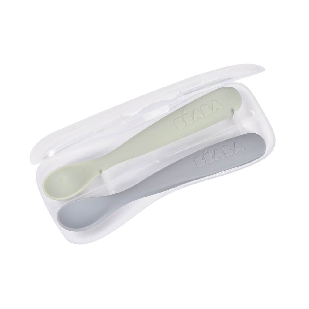Набір ложок Beaba силіконових 4+, 2 шт (сірий/зелений)