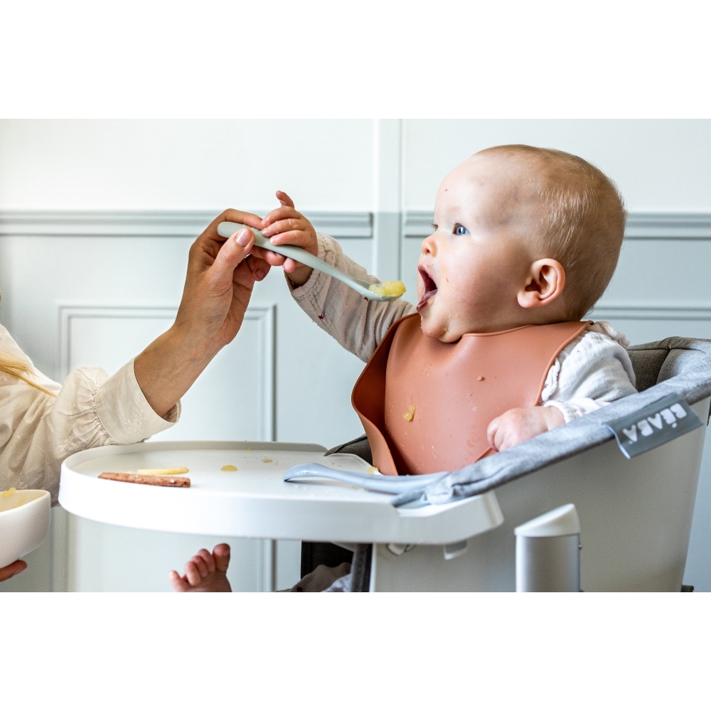 Ергономічна ложка Beaba може використовуватися не тільки для прийому їжі, але та в якості прорізувача для зубів.