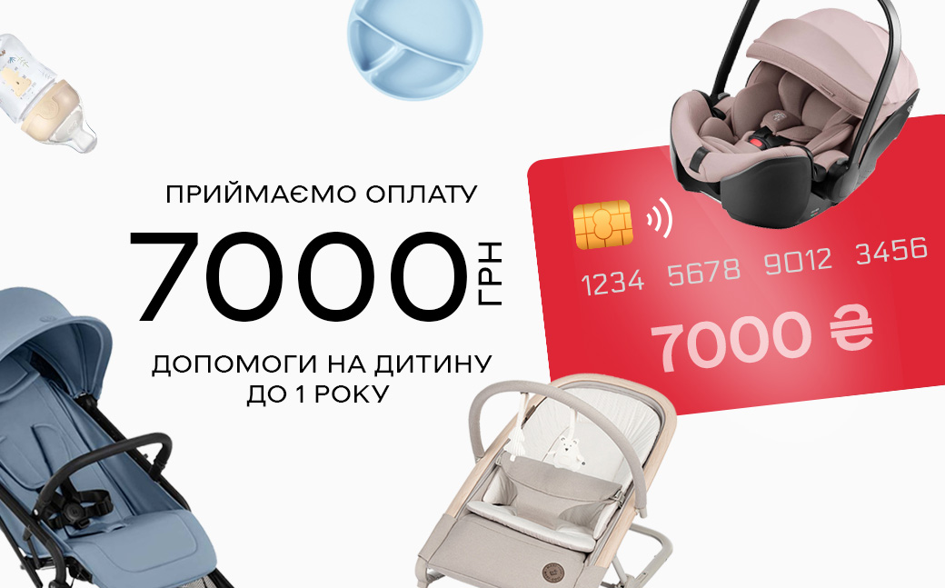 Наш інтернет-магазин має необхідний МСС-код та приймає оплату за програмою 7 000 грн на дитину до 1 року. Для покупки вам необхідно лише обрати необхідний товар на сайті та обрати спосіб оплати "Карткою виплат "7000 грн до року".