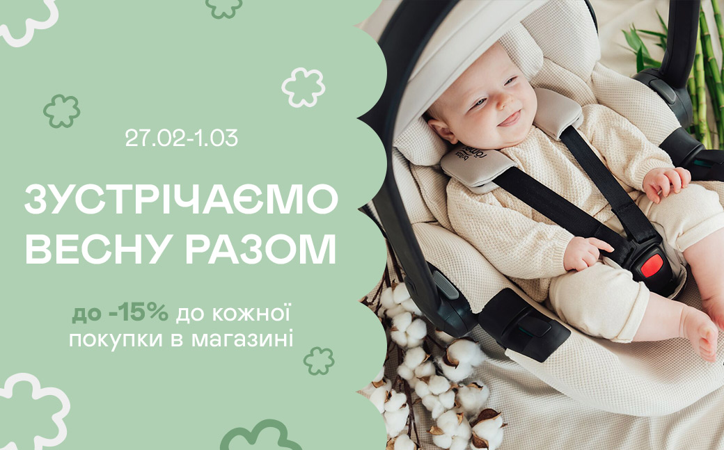 *Знижка при онлайн-оплаті та знижка за скретч-карткою не сумуються між собою. Знижка діє лише на товари категорій: Автокрісла, Коляски, Меблі та Активний відпочинок (не поширюється на аксесуари). Знижка не діє на товари брендів: Anex, Cybex, Easywalker, Espiro, Mast, Redsbaby, Leclerk, Italbaby, Diaper Champ, QPlay, Elodie Details, ErgoBaby, Tiny Love. Знижку автоматично оформить менеджер контакт-центру під час підтвердження замовлення.**Акція зі скретч-картками поширюється лише на самовивіз з офлайн-магазинів, знижка діє на все, окрім акційних товарів, товарів із подарунками, та не сумується з іншими промокодами й спеціальними пропозиціями.