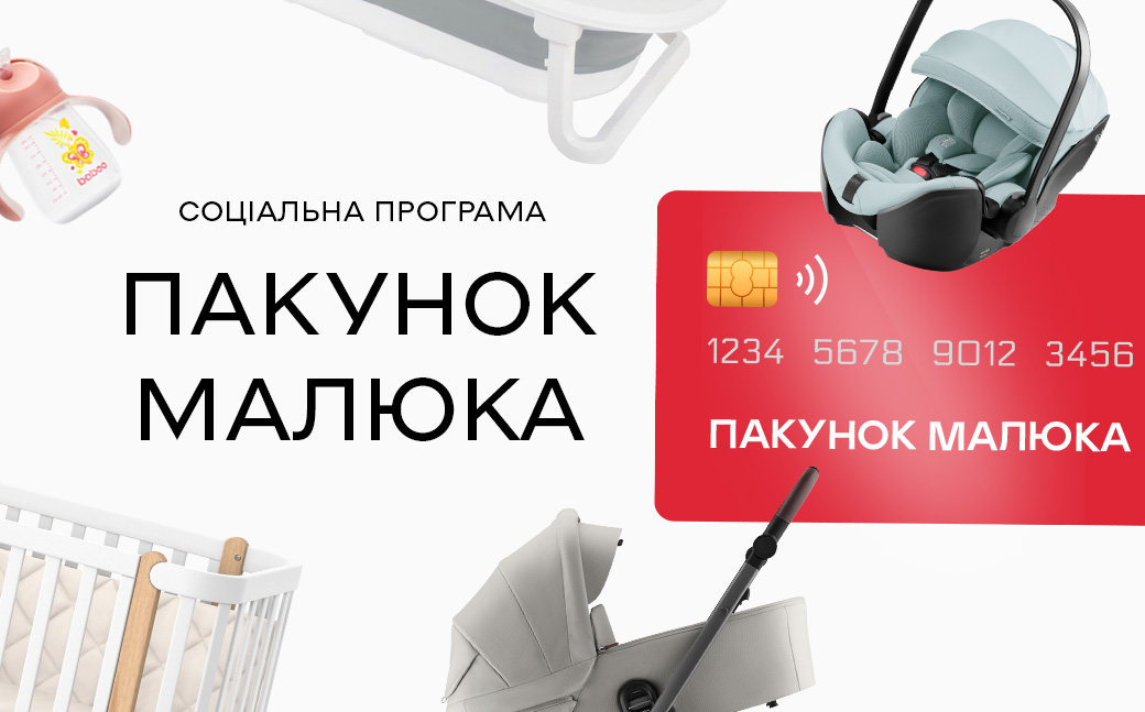 Держава надає грошову допомогу у безготівковій формі родинам з новонародженими для придбання необхідних дитячих товарів. За карткою «Пакунок малюка» батьки можуть купити все потрібне для малюка: дитячу коляску (для новонародженого або прогулянкову), автокрісло, дитяче ліжечко, стільчик для годування, засоби гігієни та догляду, іграшки, велосипед, дитячий посуд, одяг, постіль тощо.