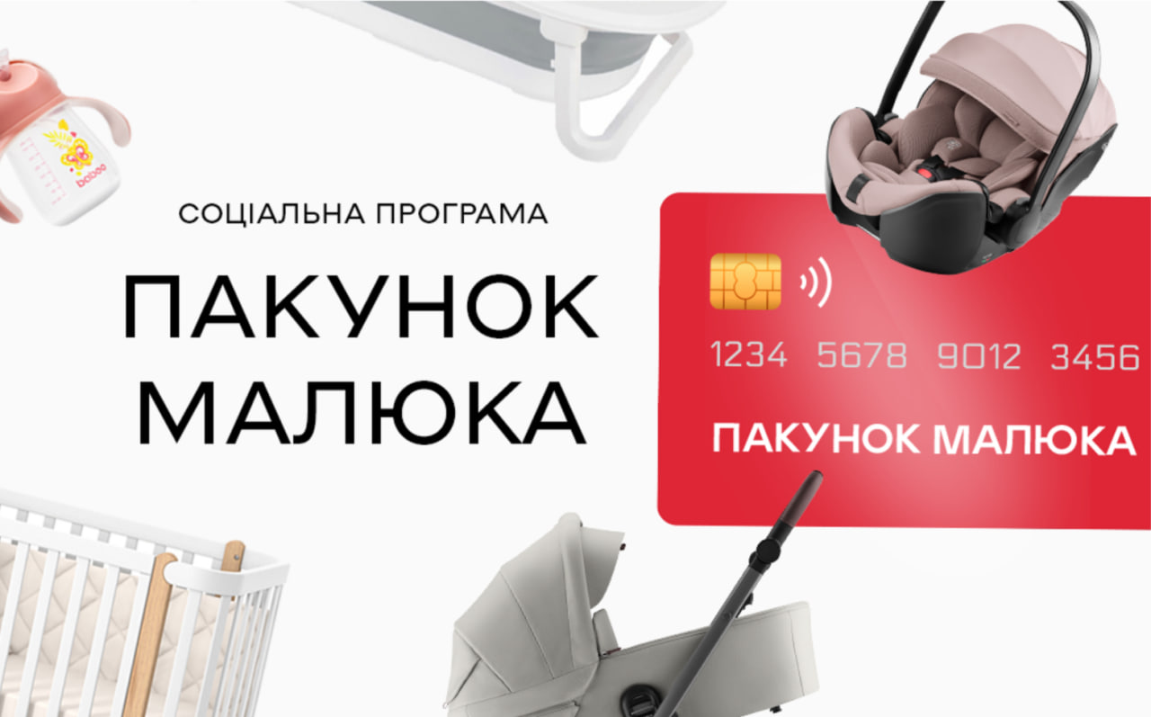 Держава надає грошову допомогу у безготівковій формі родинам з новонародженими для придбання необхідних дитячих товарів. За карткою «Пакунок малюка» батьки можуть купити все потрібне для малюка: дитячу коляску (для новонародженого або прогулянкову), автокрісло, дитяче ліжечко, стільчик для годування, засоби гігієни та догляду, іграшки, велосипед, дитячий посуд, одяг, постіль тощо.