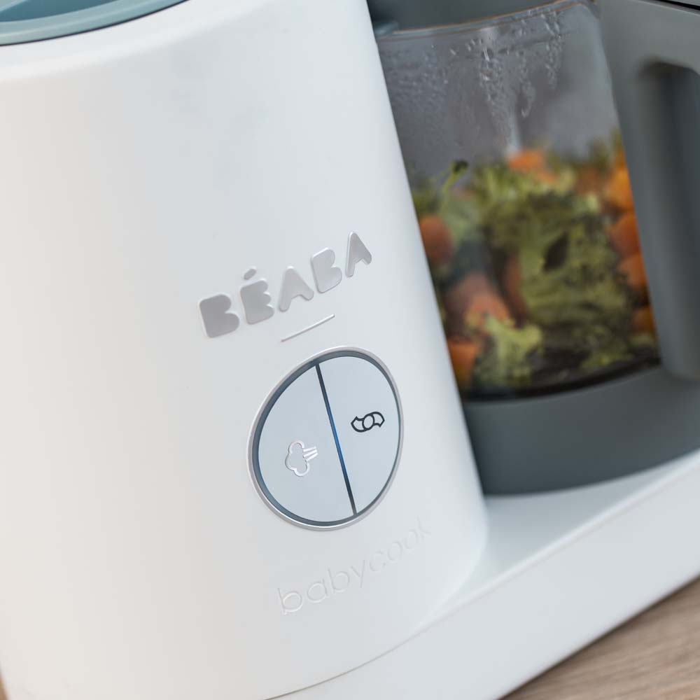 На відміну від інших подібних девайсів, овочі і фрукти в блендері-пароварці Beaba "Babycook Neo" реально готуються на пару, а не у власному соку. А сам відвар стікає в спеціально відведену скляну чашу. Пароварка цієї моделі відрізняється низьким енергоспоживанням, екологічністю, стильним дизайном.