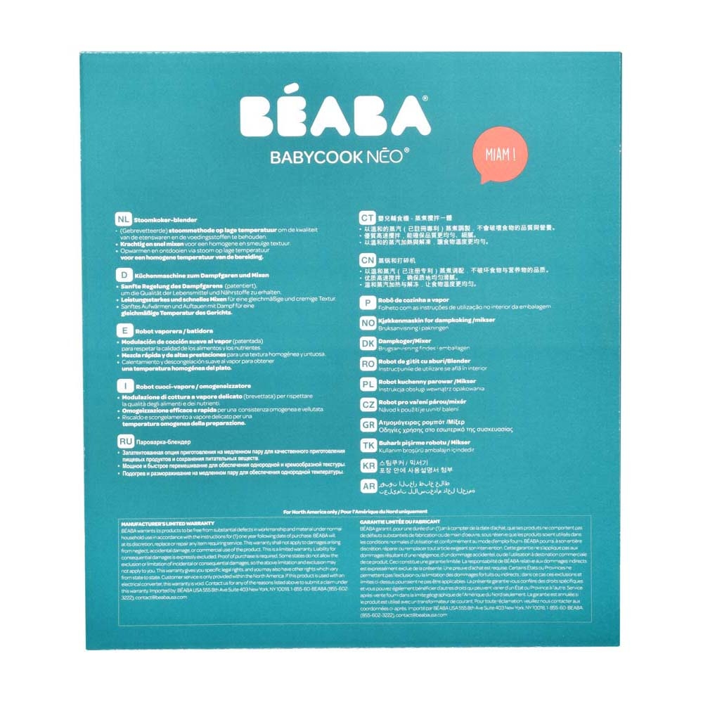 На відміну від інших подібних девайсів, овочі і фрукти в блендері-пароварці Beaba "Babycook Neo" реально готуються на пару, а не у власному соку. А сам відвар стікає в спеціально відведену скляну чашу. Пароварка цієї моделі відрізняється низьким енергоспоживанням, екологічністю, стильним дизайном.