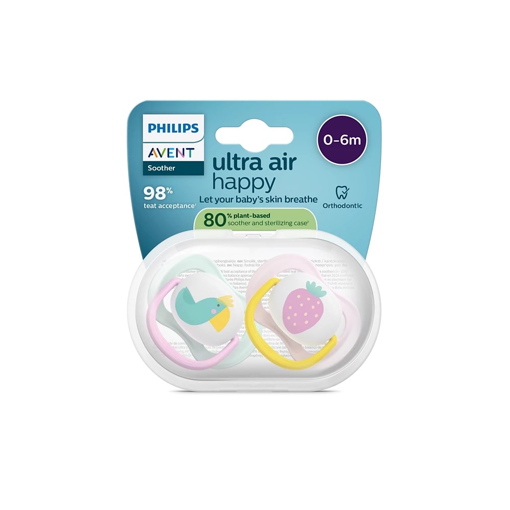 Пустушка Philips Avent Ultra Air, 0-6 міс, 2 шт (жовто-рожева)