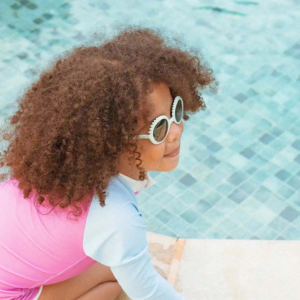 Поетична та ніжна модель Fleur доповнює колекцію Fun! Її форма поєднує круглі лінзи pantos і оправу у вигляді кола з округлими пелюстками, яка адаптується до анатомії обличчя та не заважає немовлятам і маленьким дітям.