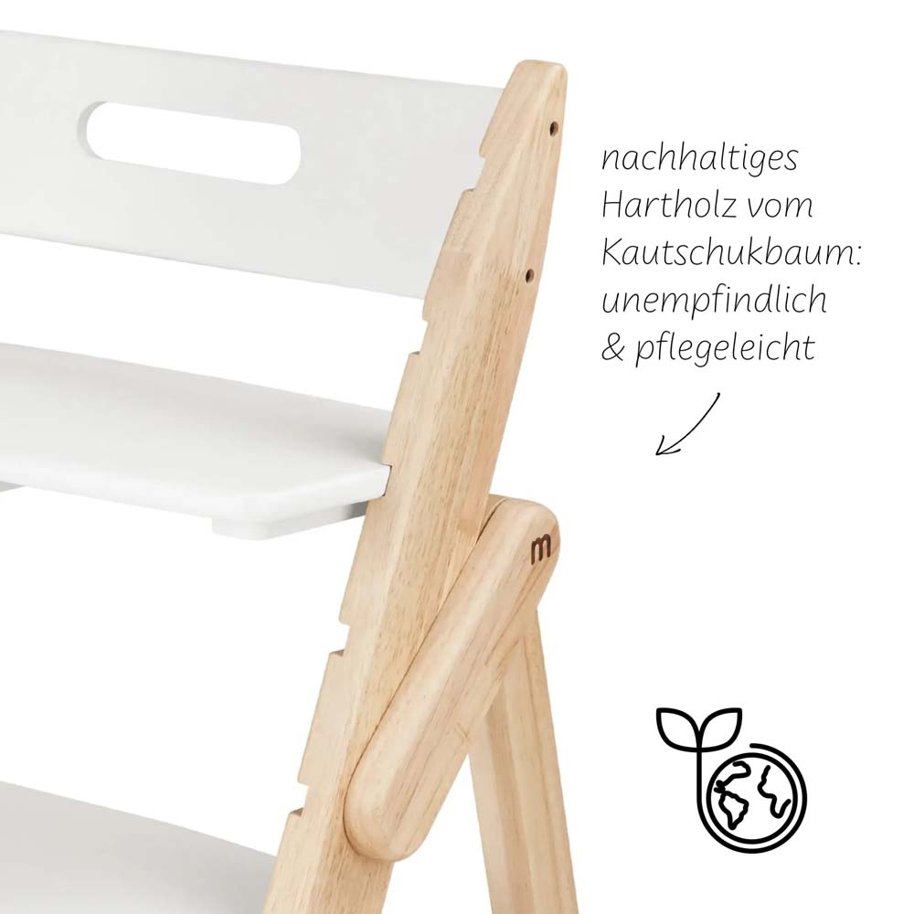Стілець YIPPY, звичайно, незамінний у великому наборі аксесуарів. Він забезпечує стійку поверхню та ідеально підходить як обідній або ігровий стілець. У поєднанні з сидінням YIPPY він допоможе вашій дитині навчитися їсти та грати самостійно. У разі забруднення гладку поверхню можна легко протерти.