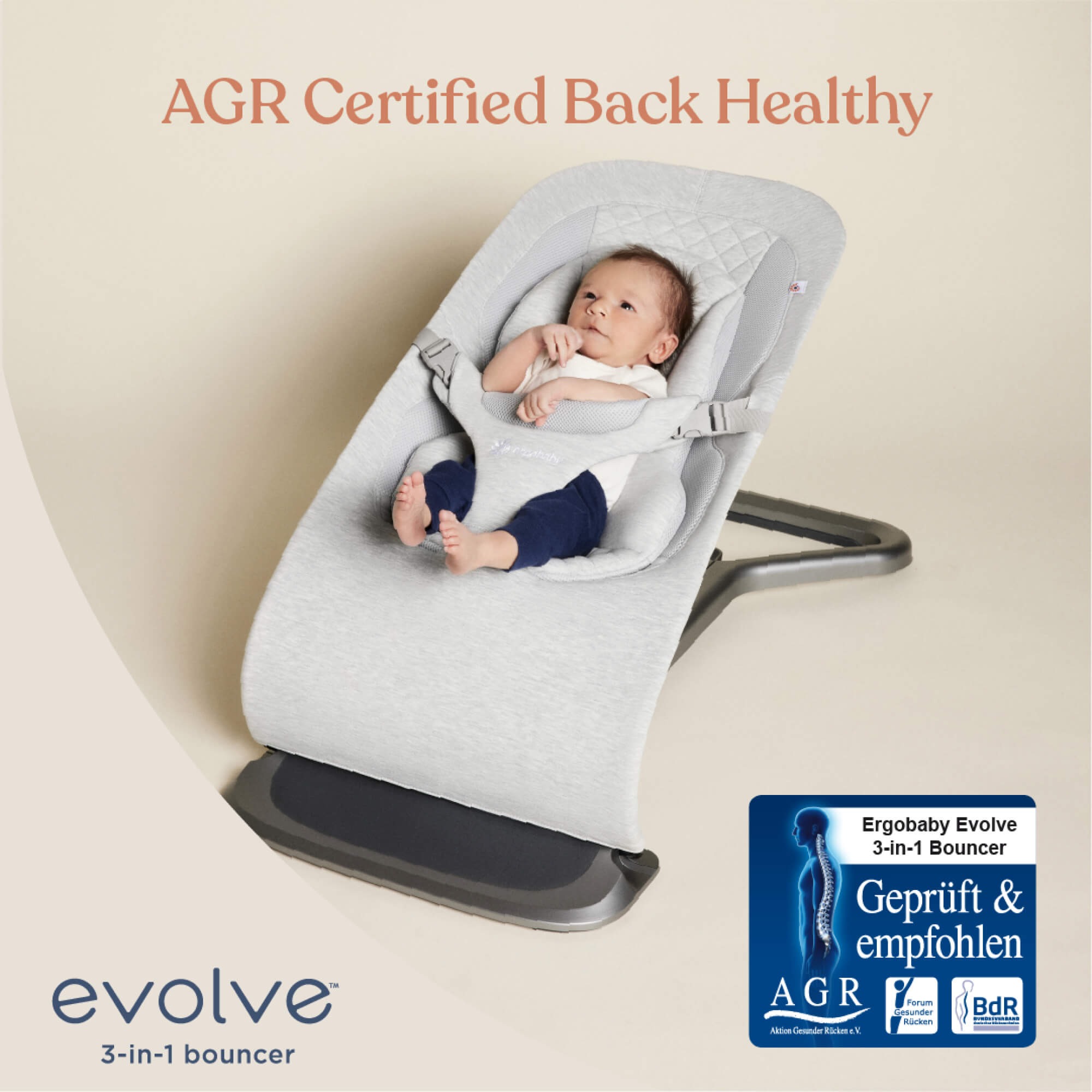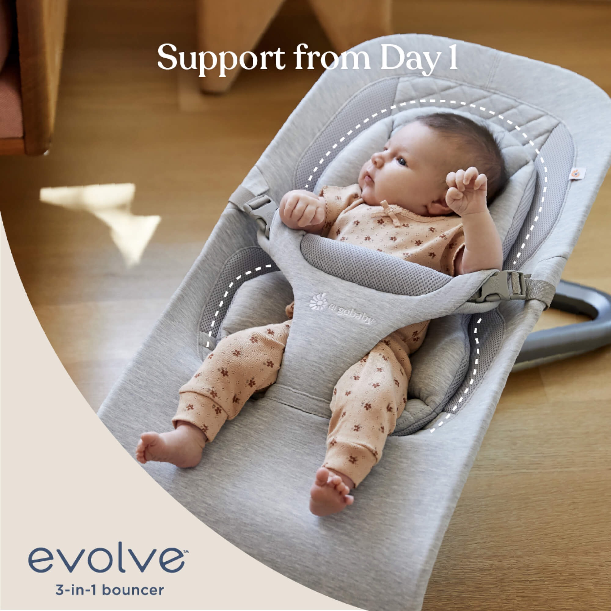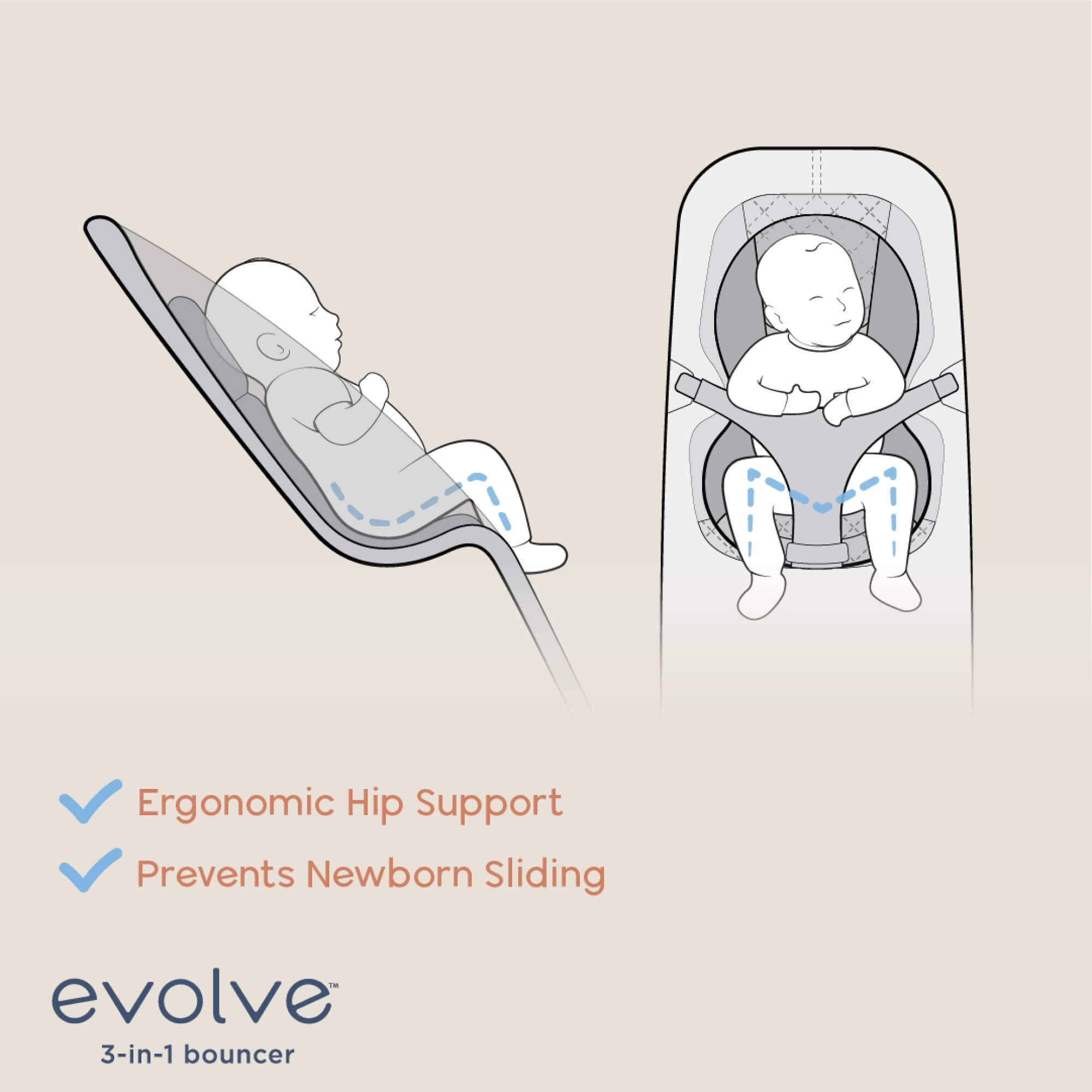 Універсальний шезлонг, що «росте» разом з дитиною: від затишного гніздечка для новонародженого до комфортного крісла для малюка. Розроблений за участю дитячого ортопеда для забезпечення фізіологічно правильної підтримки на кожному етапі розвитку.