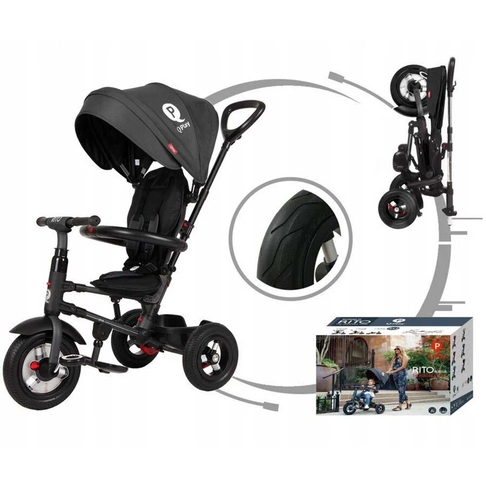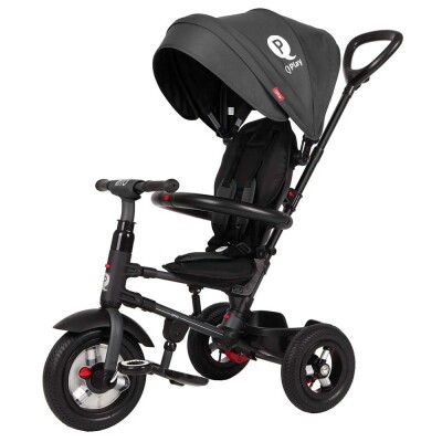 Триколісний велосипед QPlay Rito можна штовхати та контролювати дорослими до тих пір, поки дитина не навчиться їздити. У спекотний сонячний день капюшон захищає дитину, і при необхідності його можна легко демонтувати.